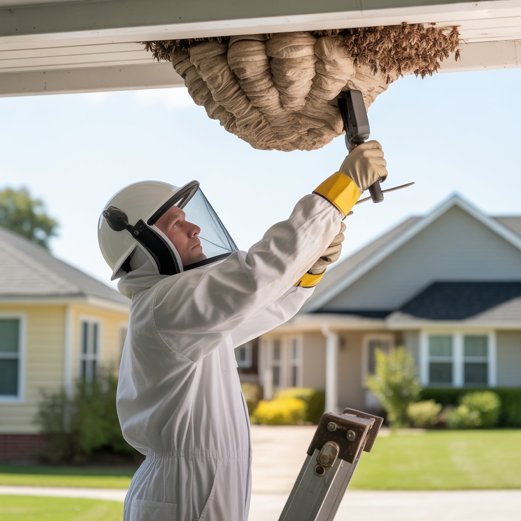 Problem: Homeowner discovered aggressive wasp nest in roof causing safety risk.